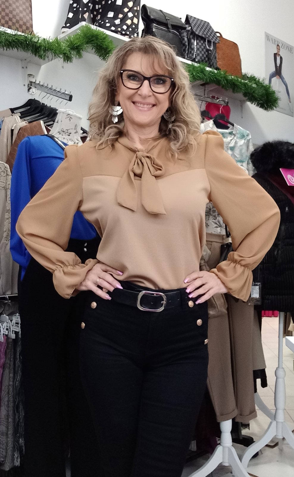 Alkalmi felső muszlin ujjal, megkötővel.Méret nélküli, S-L-ig jó. A modell S-es méretet visel.