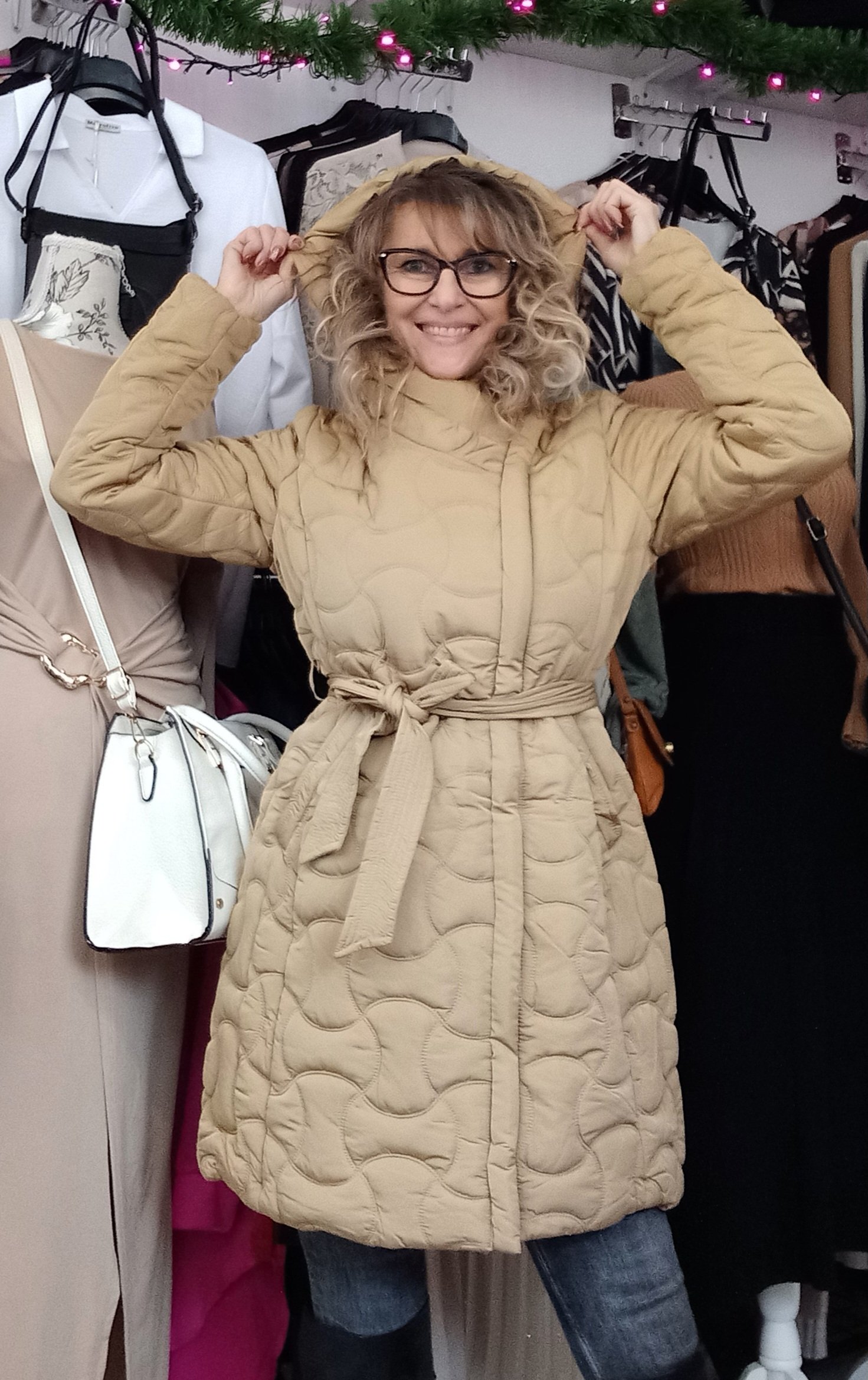 Hullámosan steppelt,sálgalléros,ferdén cipzáros, öves,kapucnis kabát őszre és télre.