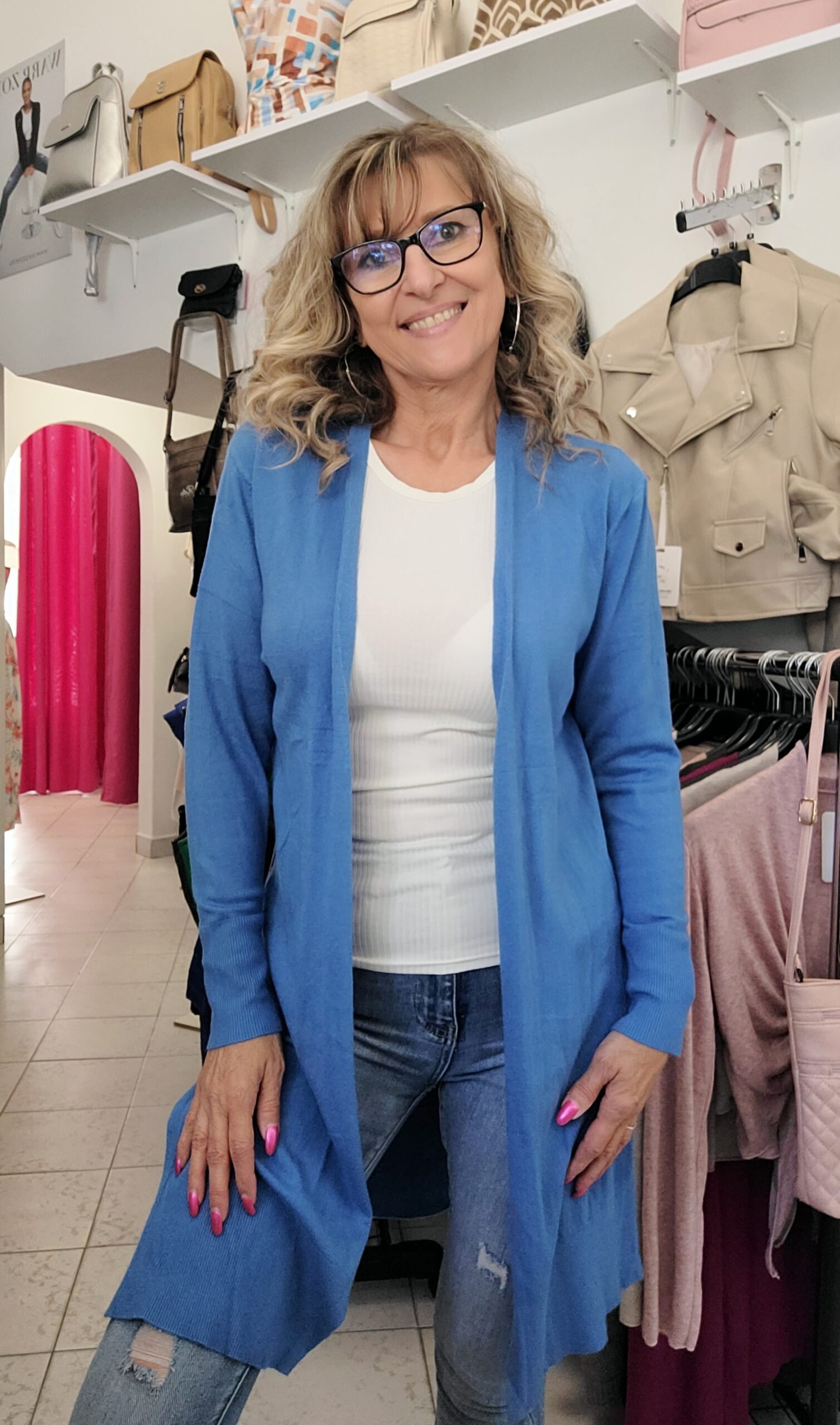Vékony kötött kardigán, egyméretes,hosszított fazon,oldalt felvágott.