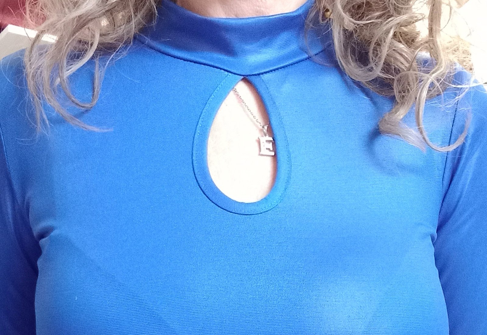 Alkalmi ruha enyhén fényes,bőrhatásúnak tűnő anyagból,elöl csepp alakú kivágással.Méret nélküli,a modell S-es méretű.Enyhén rugalmas anyagú.