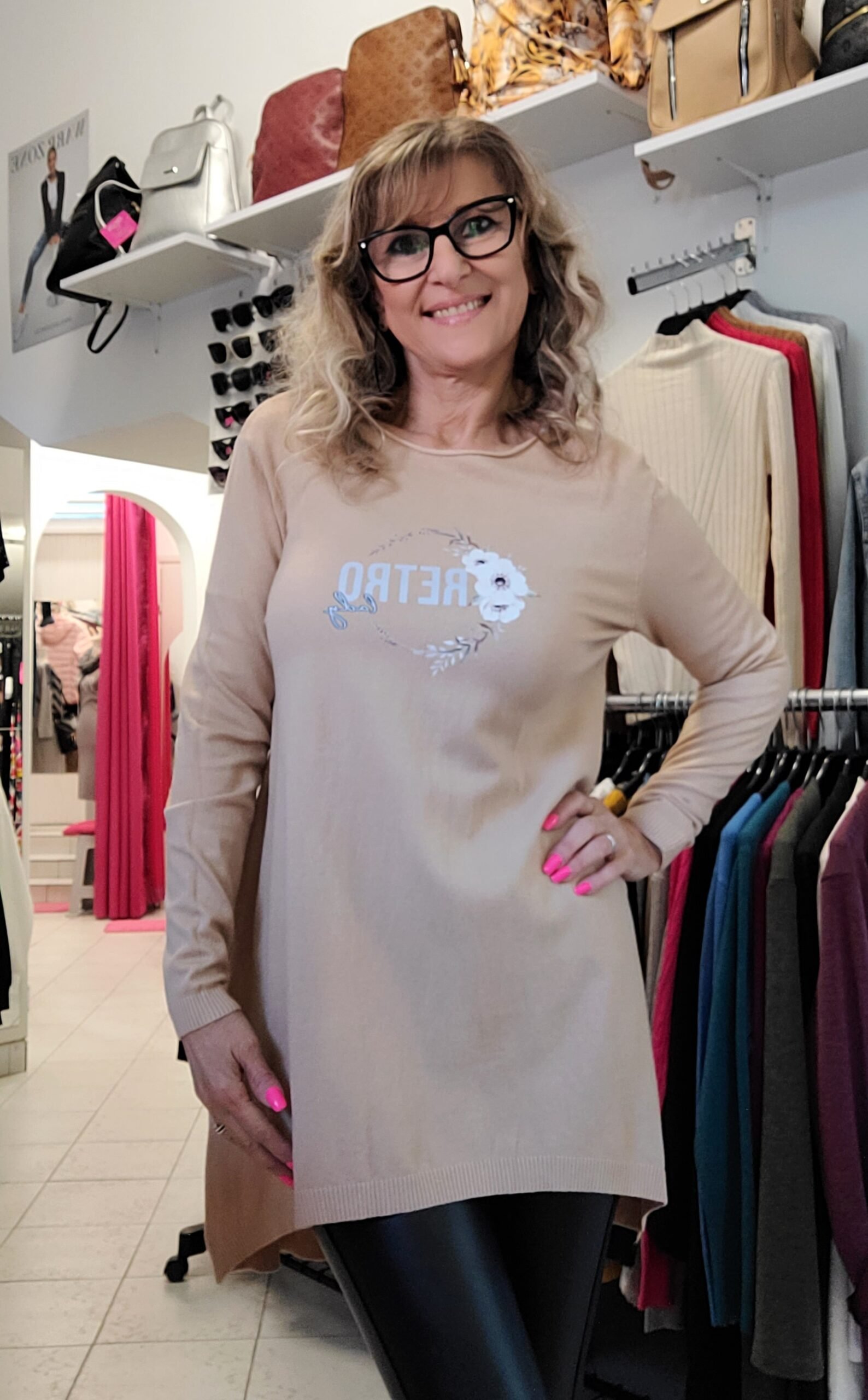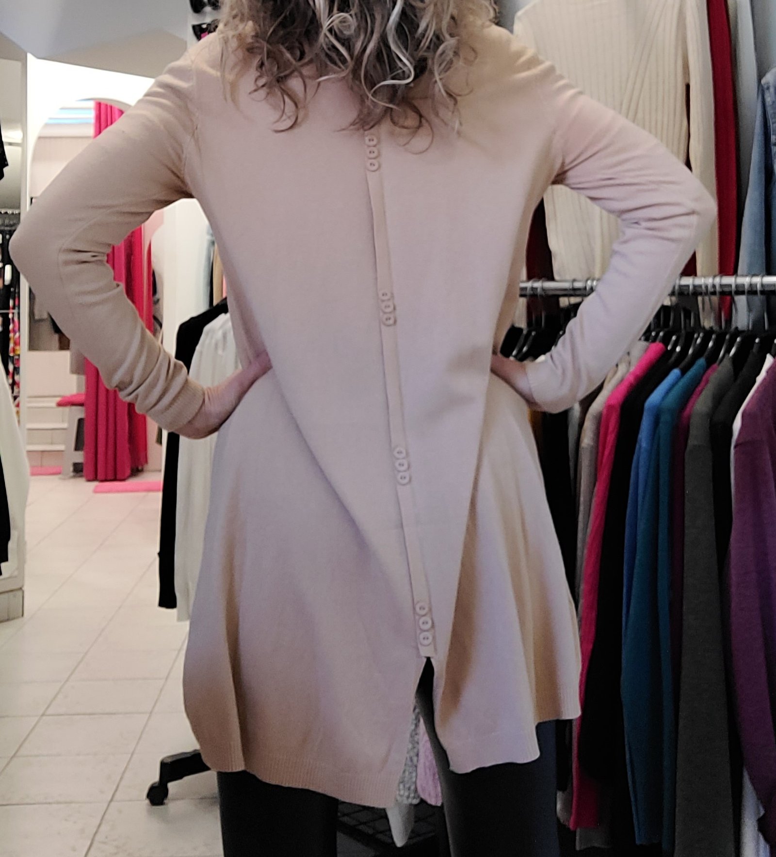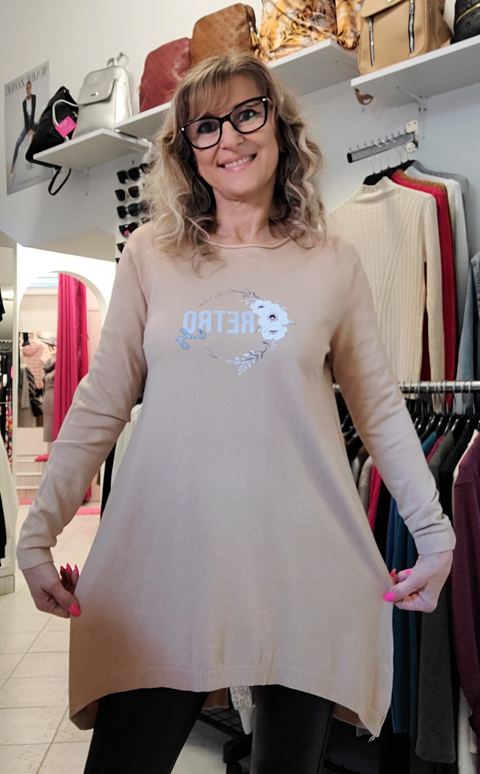 Vékony kötésű tunika, hátul dekor gombokkal, elöl márka applikációval. Lezser fazon,méret nélküli, S-XL-ig jó.