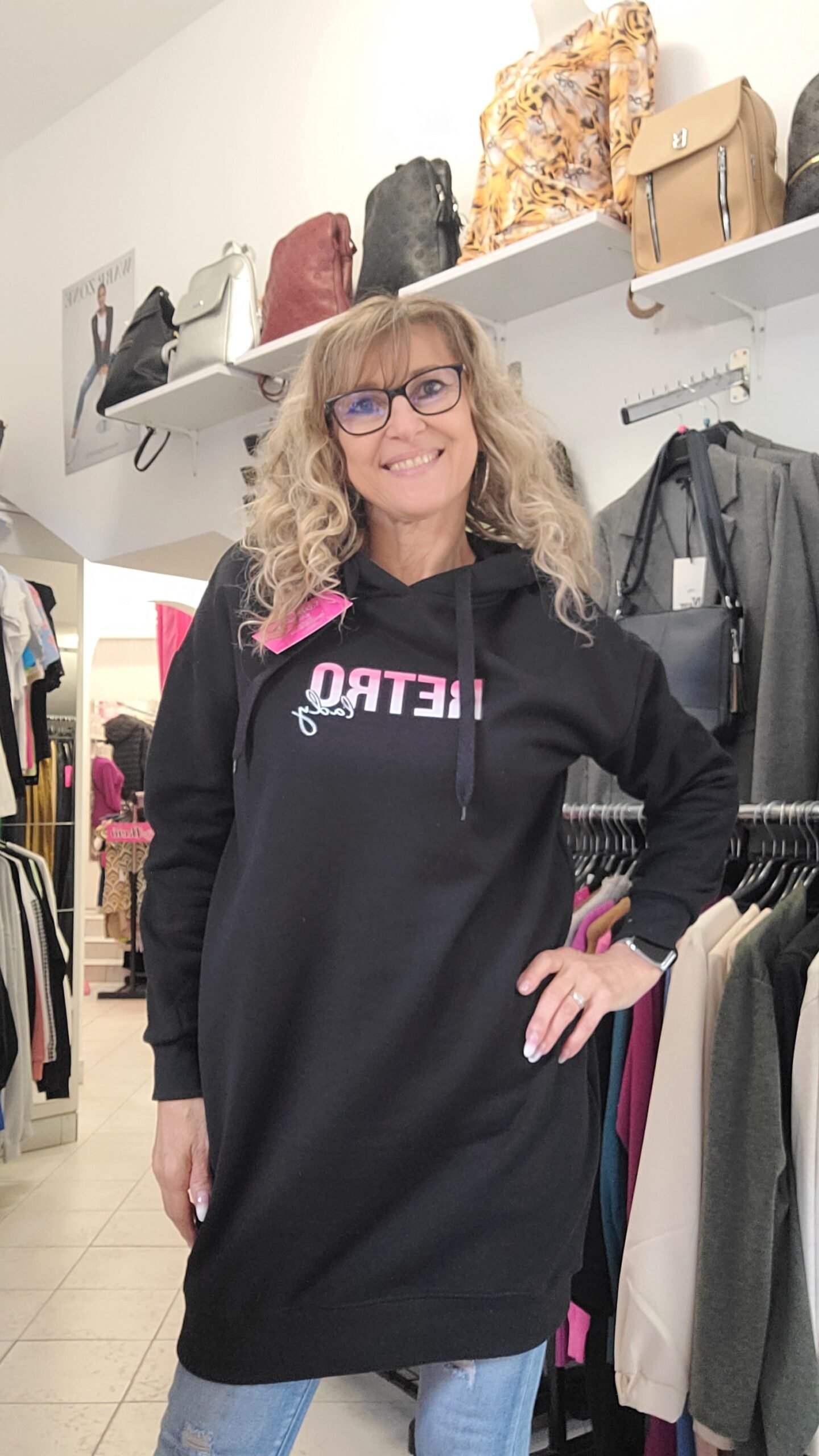 Retro Lady márkájú pamutos anyagú tunika,belül bolyhos,kapucnis, elején felirattal.