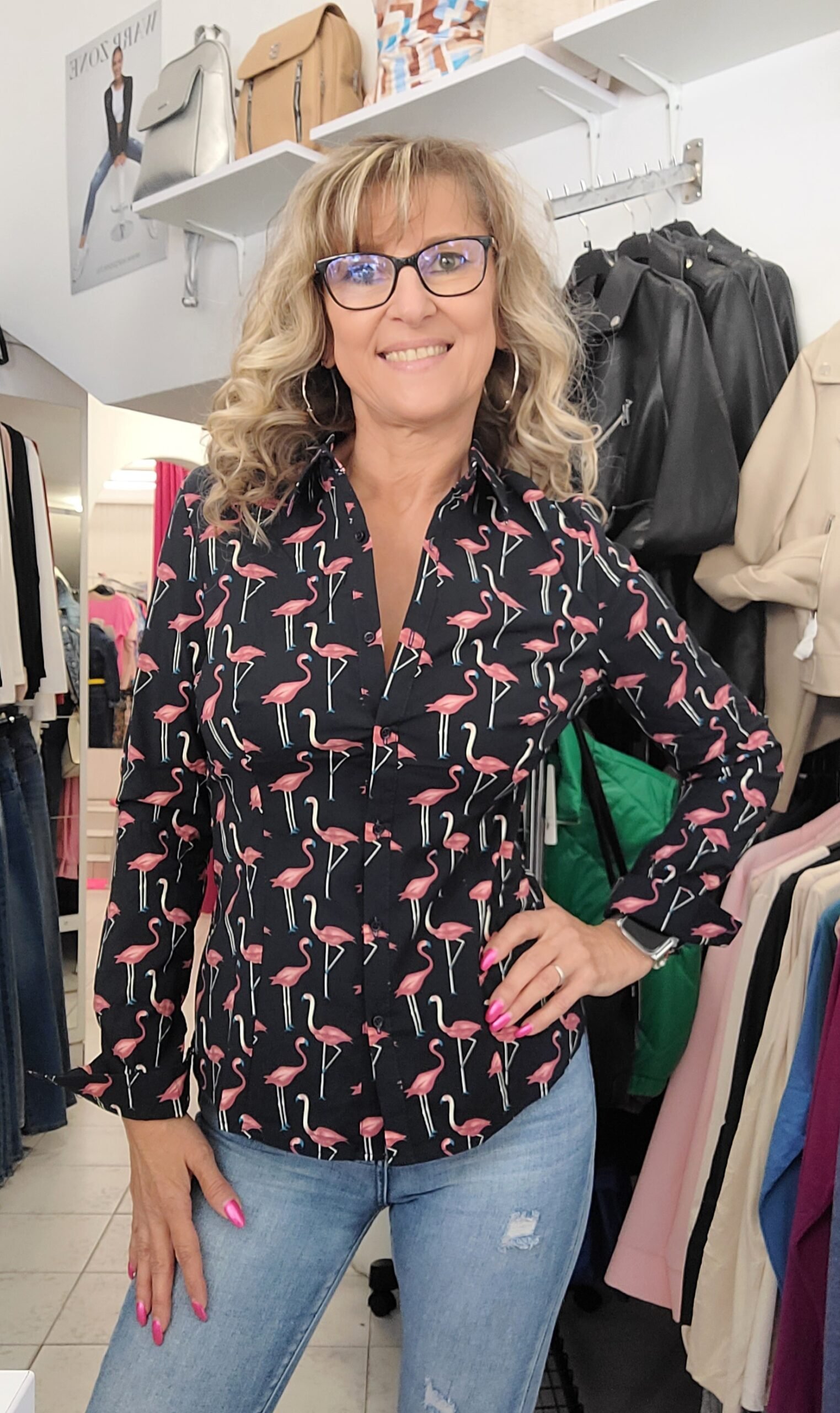 Rugalmas anyagú ing, pelikános mintával.Hosszú ujjú.Kisebb méretezés.